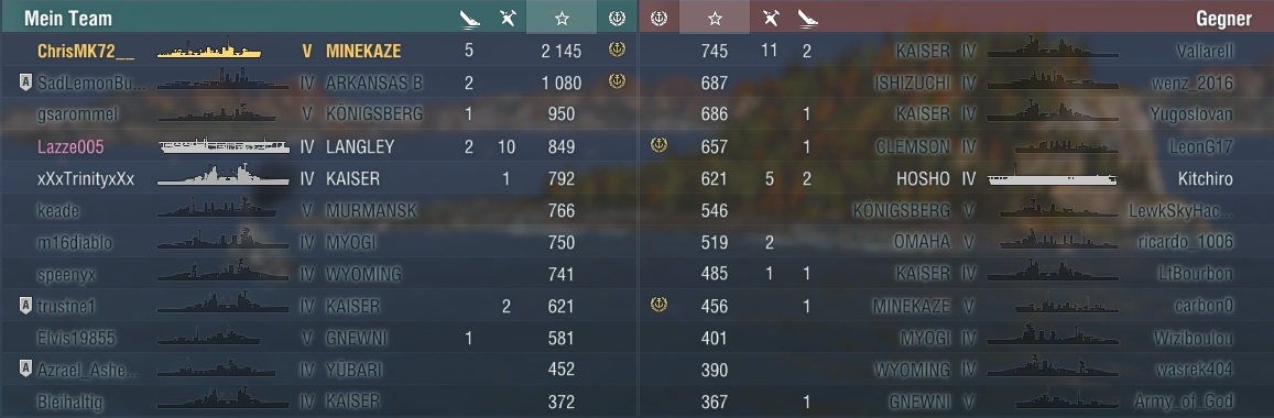 schlussendlich hatte ich 5 kills, unser CV glaub auch 4-5 kills