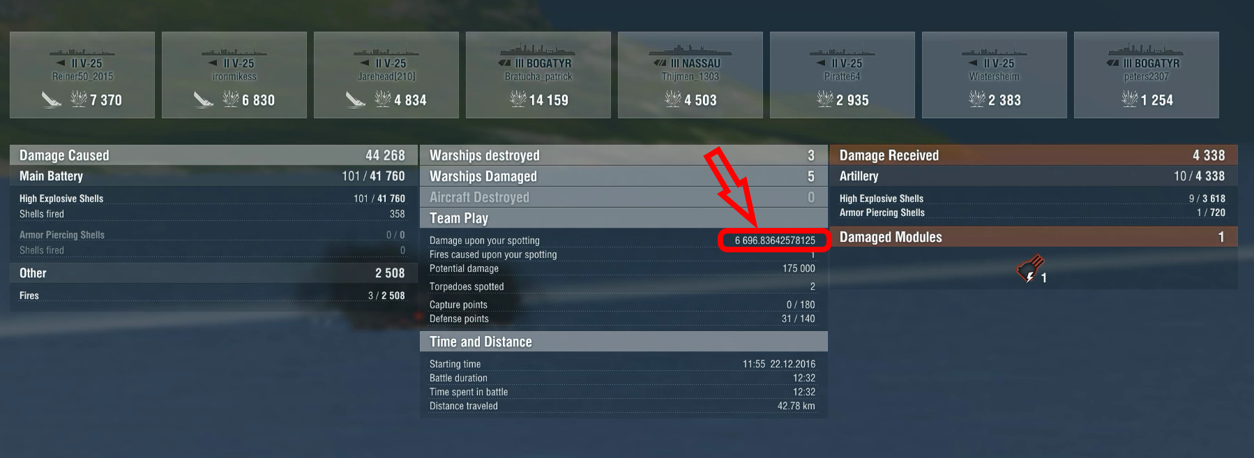 Ich wollte schon immer mal ganz genau wissen, wie viel Spotting Damage ich geschafft habe.