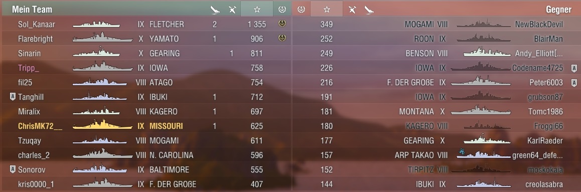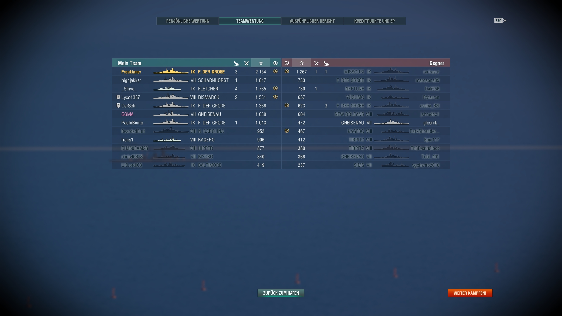 Ich werde mit der Arizona bestimmt ein paar Runden drehen. Nur viele und regelmäßige Runden wird es nicht geben. Warspite und Arizona vertragen das Tier 8 MM aktuell nicht so. Warspite fahre ich deswegen sehr selten. War sonst in der Regel immer mein Warm Up Schiff. Diese Rolle hat aktuell die Scharnhorst eingenommen.