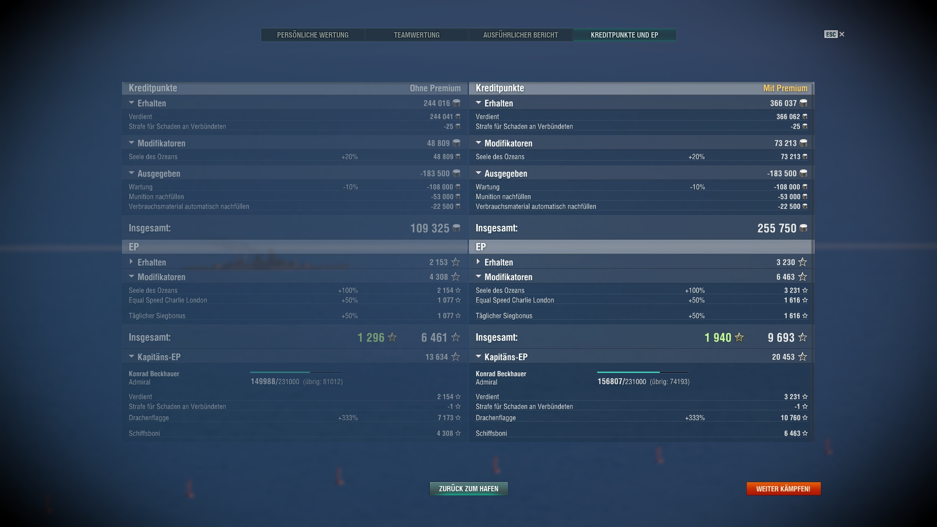 Dafür hab ich schließlich ne Missouri gekauft. Da geht das Kapitän leveln auch ohne Premiumzeit etwas schneller(einfach wegen höherem Tier und natürlich +100% XP Bonus). Ok, nebenbei macht die Missouri mit dem Radar natürlich auch Spaß(und Kredits