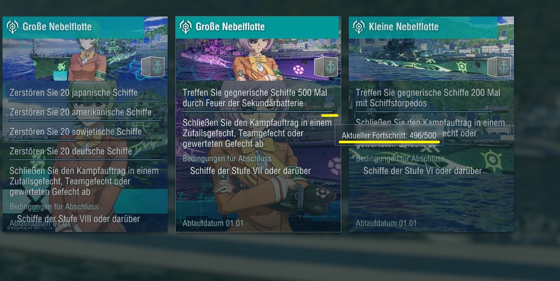 Hab einfach zuviele ARP Schiffe. Je 4 Stück der T5 Kongo und 4 Stück der T7 Myoko Klasse. Dazu noch die Takao. Würde gerne je 3 Stück loswerden. Was aber nicht geht. Dabei hab ich mich wirklich angestrengt um keine mehr abzuschließen. Leider hat nicht geklappt. Mist.