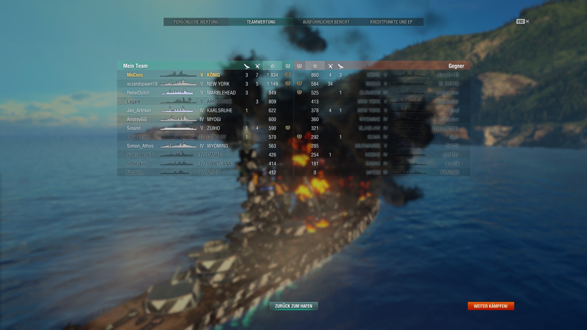 Ich werde noch ein paar Gefechte mit dem FDG machen, falls sich dort keine Verbesserung einstellt werde ich den Grind erstmal pausieren. Des Moines und Zao sind für mich sowieso interessanter als alle Tier 10 Schlachtschiffe und auch als diese miesen deutschen DDs.