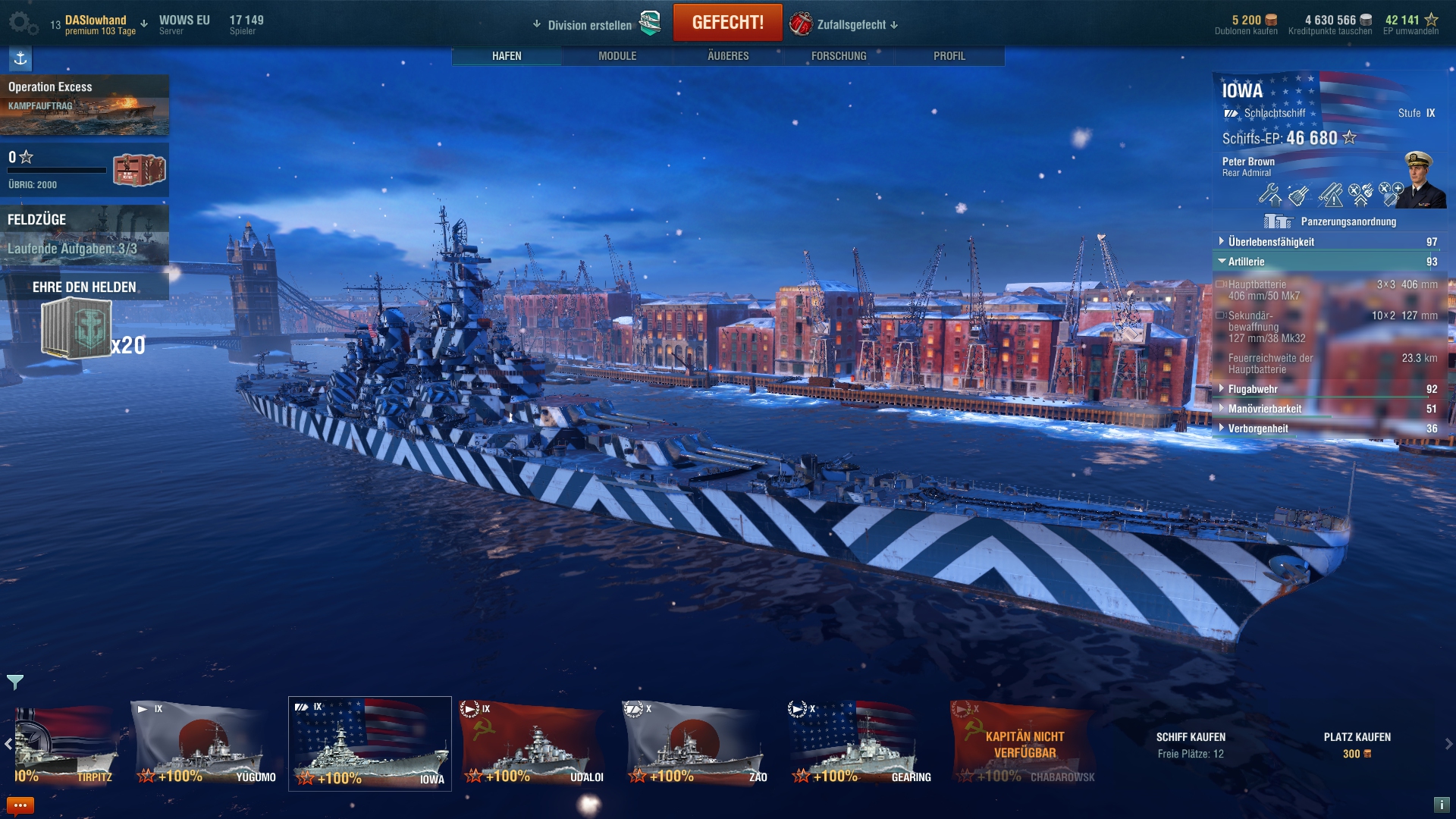 Warum hab ich mir das angetan 9 Runden Arizona um auf 15 Punkte für den Iowa Kapitän zu bekommen. Meine Fresse sind heute Leute wieder unterwegs, man könnte meinen die haben eine andere WoWs Version ohne Minimap und Chat.