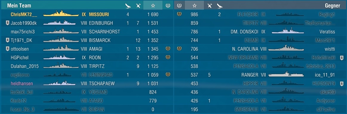 Und stimmt, mir is aufgefallen, dass auch mit der Tirpitz viele schon bei 6KM die Torps los lassen, wobei ich die meist erst bei der Vorbeifahrt loslasse, so fern die Dinger nicht wieder zerschossen wurden.