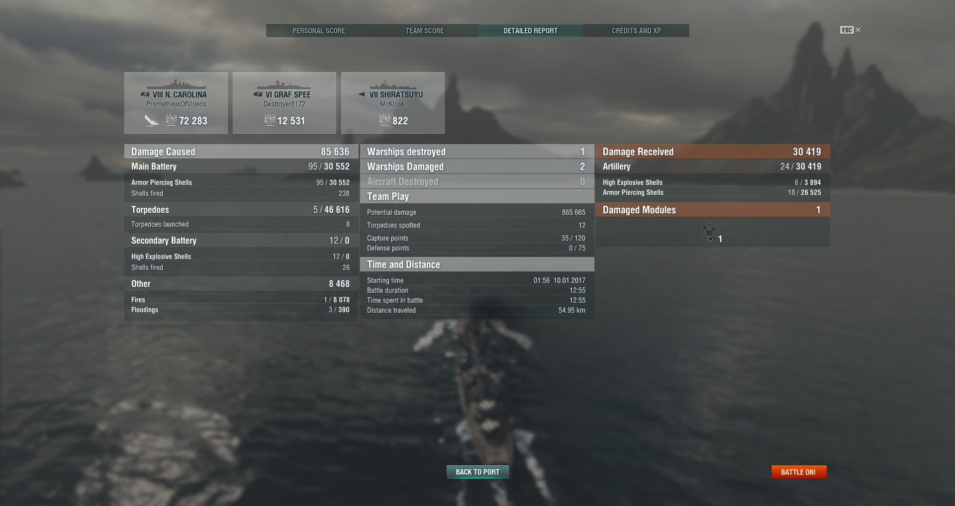 HP Pool, Panzerung und Reparatur machen sich im Kampf gegen gleichstufige oder niedrigere BBs und Kreuzer gut, man kann dank dessen und den Torps sehr gut mit ihr in den Nahkampf gehen.