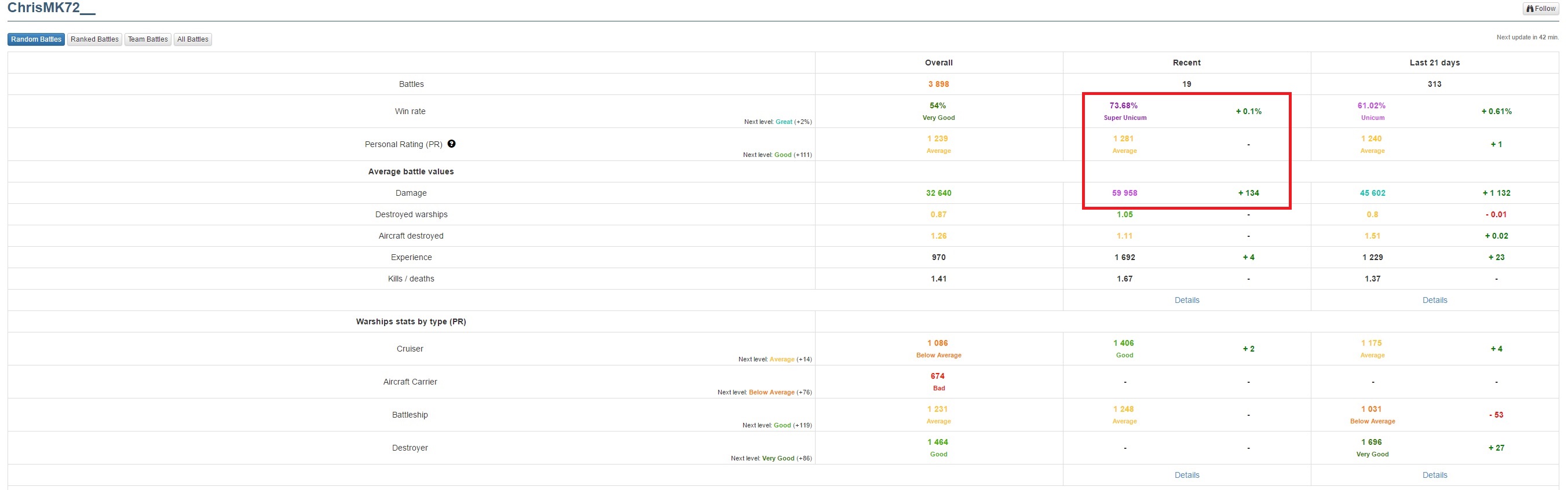 Nando. schrieb:Was mir gerade aufgefallen ist und ich noch nie bemerkt habe: Bei wows-numbers kann man ja direkt Spieler vergleichen! War mir neu.