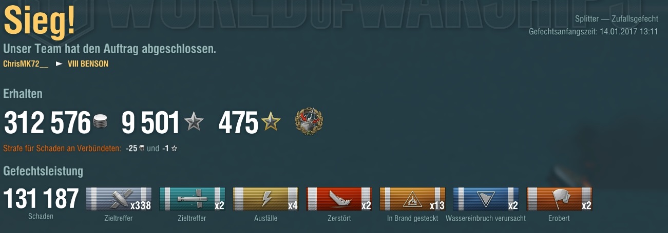 Hätte aber nicht gedacht, dass das MM da rein grätscht. Habe zwar auch mal 7 Citas in einer Runde geschafft, aber in 2 Gefechten war ich der einzige Kreuzer ... und auch eine Molotov macht gegen 6 dt. BBs keine Cita.