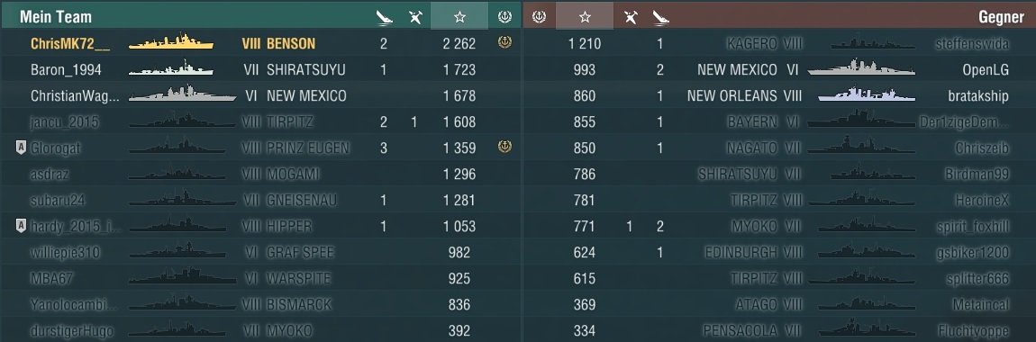 Schiffe wie Missouri, Tirpitz, Atagao, Lo Yang, Blys ... äh ... kawiza !? Halt Blys, machen mir auch richtig Spaß.
