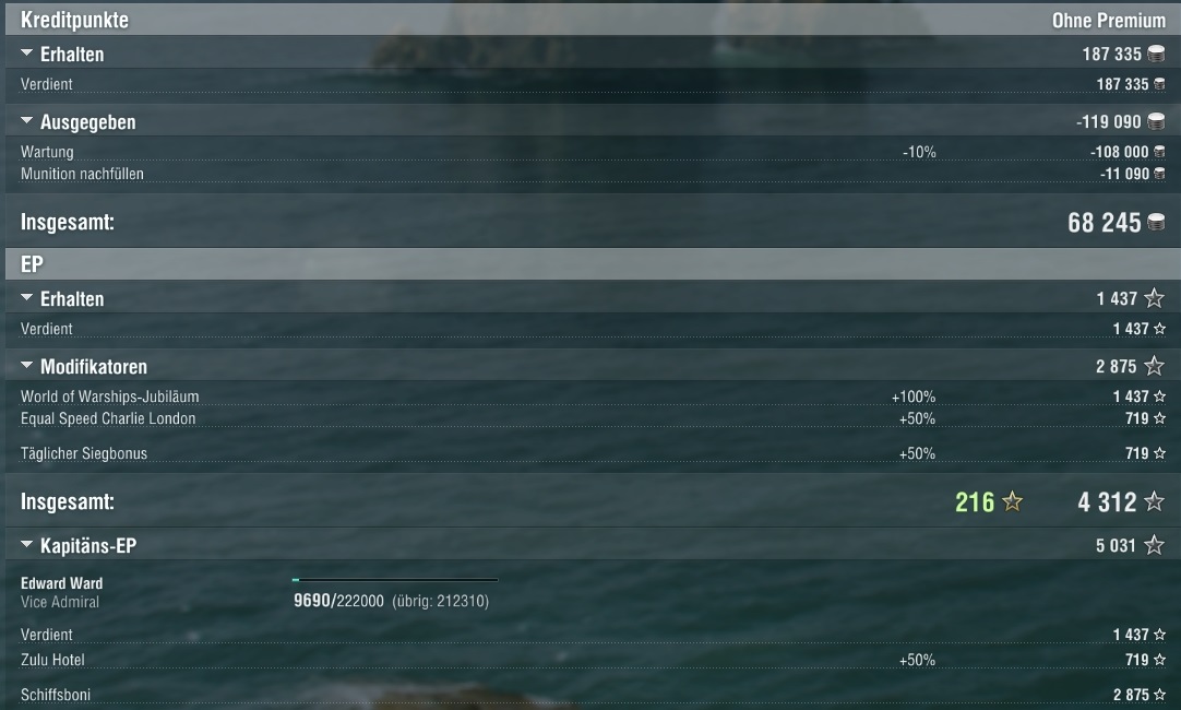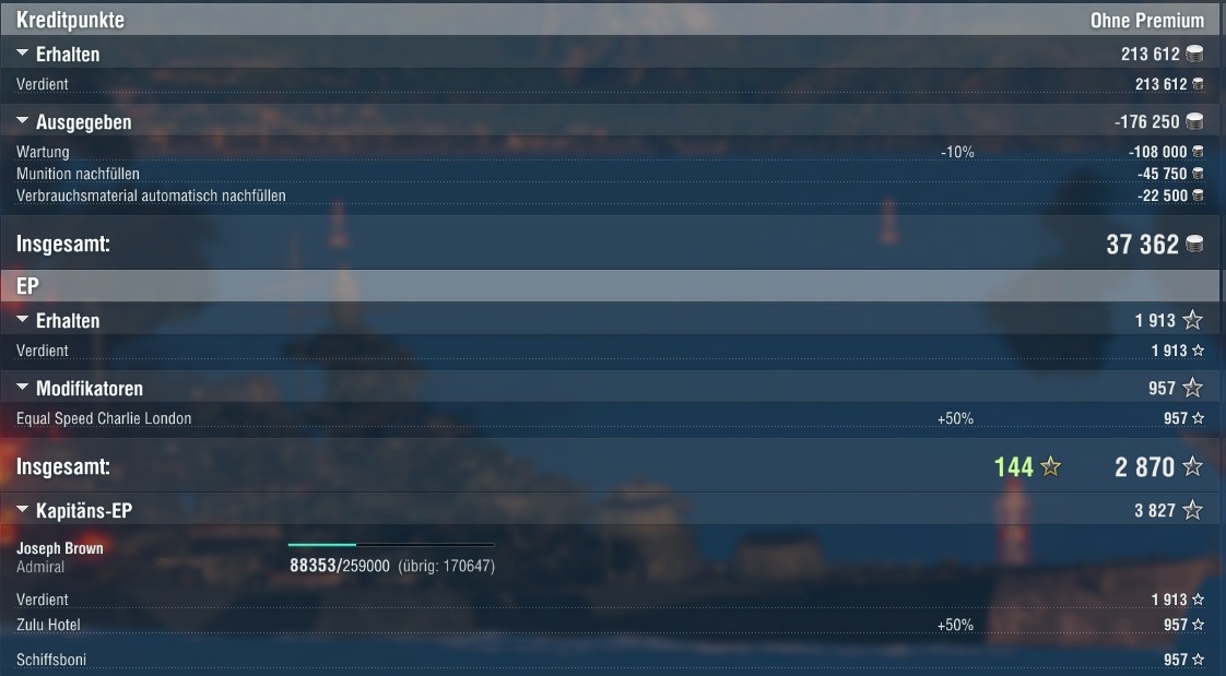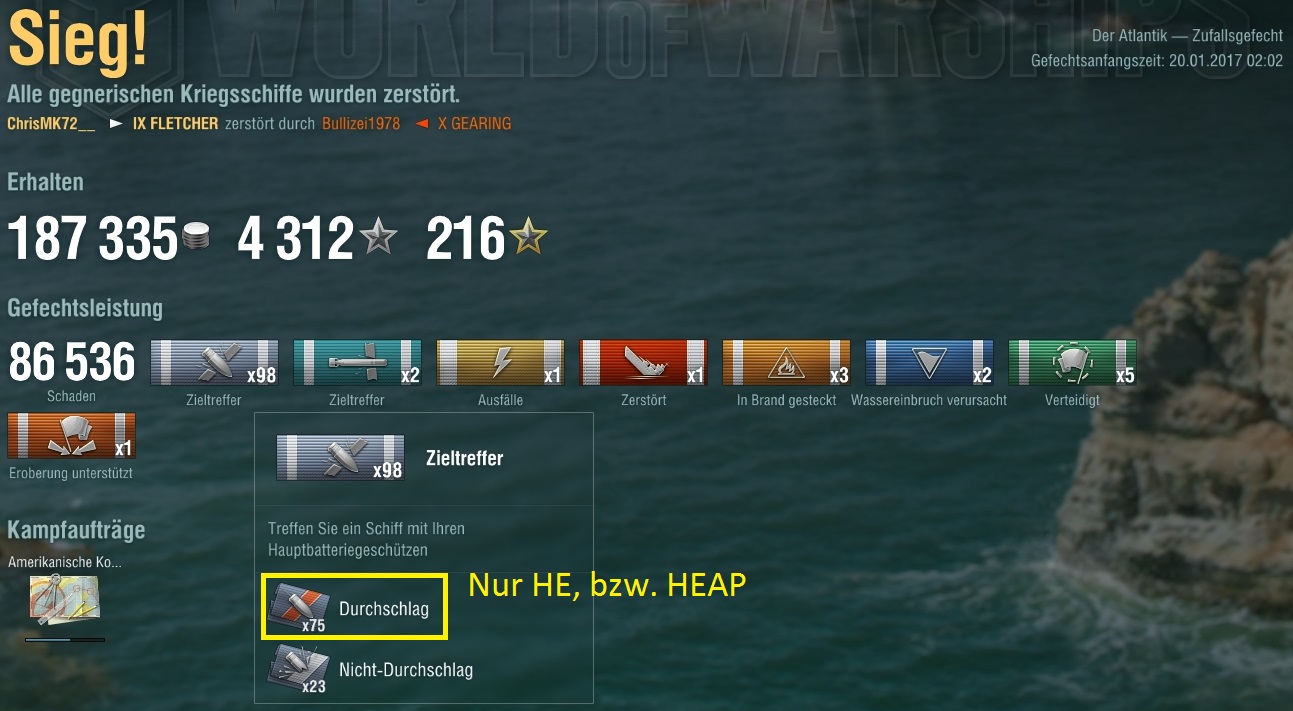 Dachte eigentlich ich wäre zumindest etwas angewinkelt, aber das reichte wohl nicht und es gab Zitas. Dachte schon es wäre vorbei und die Missouri setzte nach, mich zu versenken.