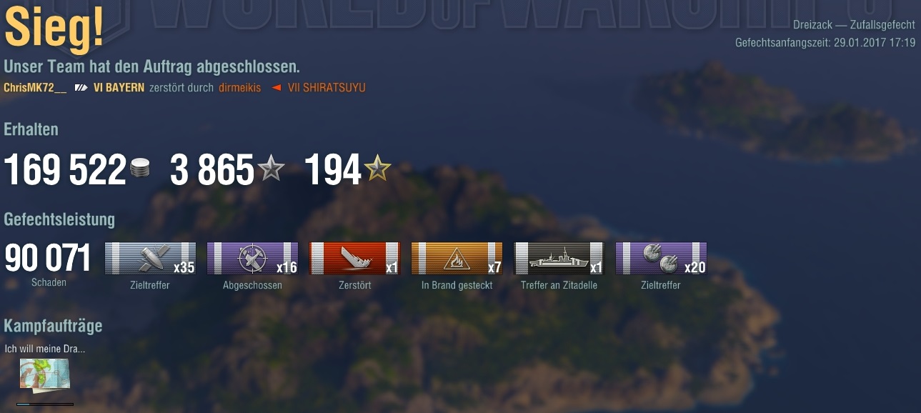 Ganz zu Beginn (vor dem ersten Schaden) gleich ein Kagero-Torp und eine Zita von einer Edinburgh gefressen ... also das gesamte Match im roten HP-Bereich gespielt.