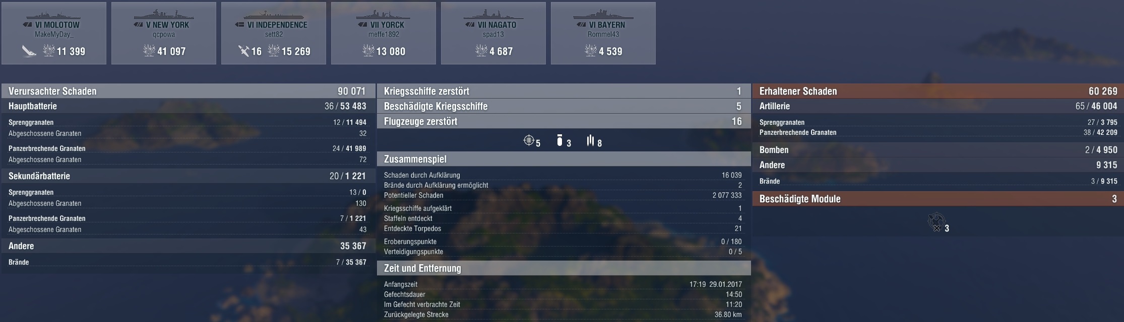 Ab Minute 5 geht es los ... seine Salve bei ca. 6:43 war auch göttlich: 6 Murmel einer Missouri auf eine 7000-HP-quer-stehende-Fiji ... 4000 Schaden. Hat bestimmt in die Tischkante gebissen.