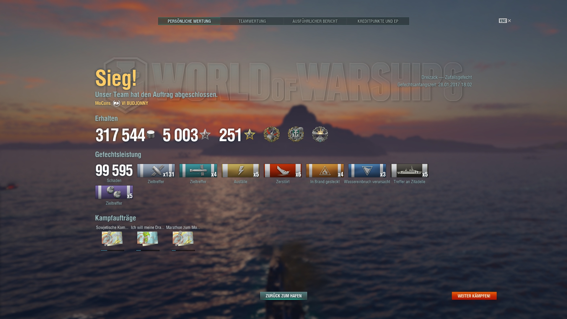 War ganz witzig mit der Stock Buddy zu fahren, wollte sie mal wieder ausprobieren mit der neuen Tarnung, die man erspielen konnte. Das Team war etwas passiv, also bin ich mitten rein. Gegen die Gneisenau, das war da eine Zitterpartie, wir sind uns auf unter 3km nahe gekommen. Ich dachte: na entweder torpt er mich oder ich ihn und zack... ihn getorpt, seine Torpedos waren wohl noch auf CD.