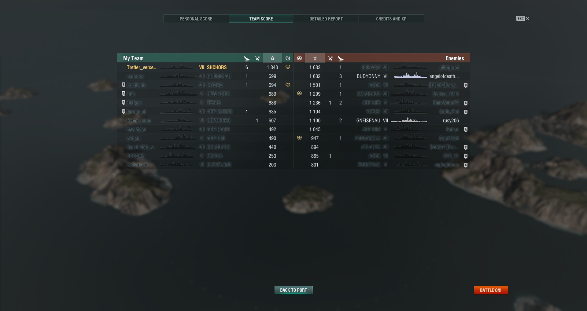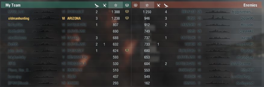 Problem bei uns war die Akatsuki, die gar nix gemacht hat. War immer 5 km hinter mir und hat auf die gleichen Leute getorp. Einmal im Cap sogar DURCH meinen Nebel (wo ich noch stand), auf einen Gegner in 11 km Entfernung, der im Fokus von 5 Schiffen war und nur noch 1000 HP hatte. Die hat mich 2x fast erwischt und sonst nix gemacht.
