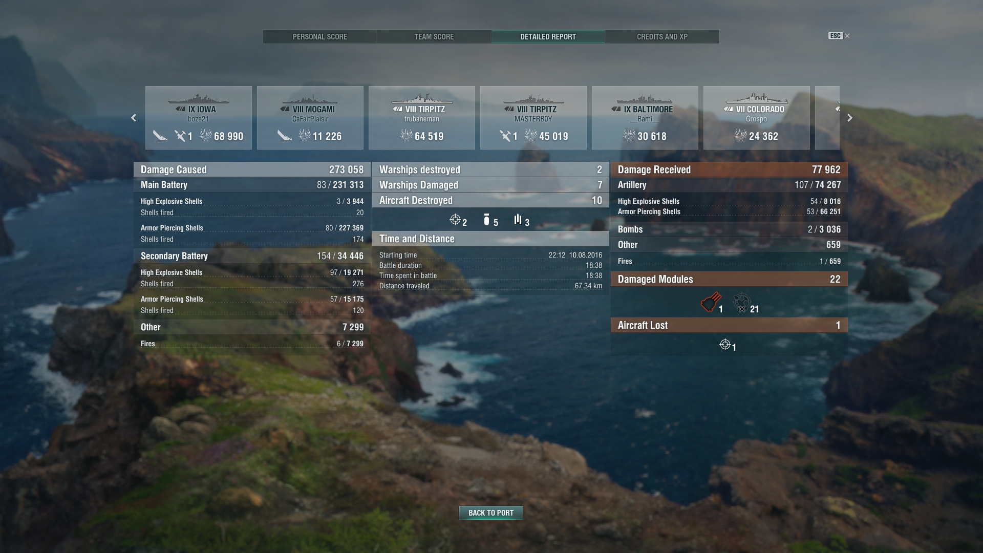 Wenige Salven später, die secondaries hatte 18k damage beigetragen, drehten sich die Iowa auf die Seite und auch ich musste mich wenden, da von links die beiden Tirpitz heran kamen.