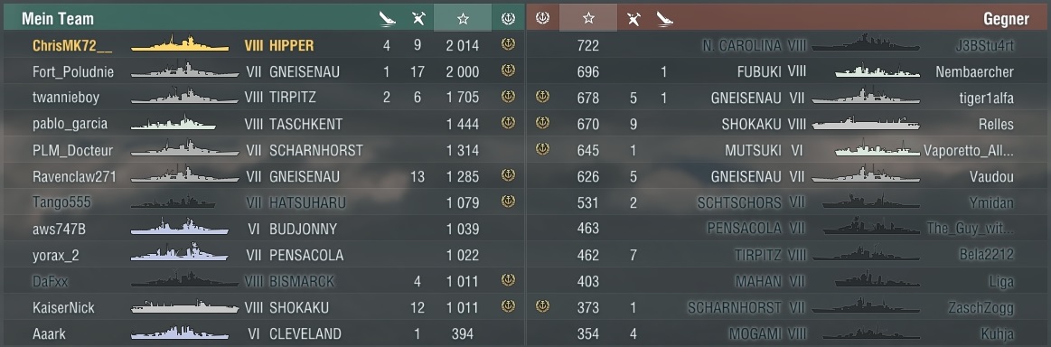 Vorhin hab ich auch mal wieder bemerkt, dass sich so manche Scharnhorst und Tirpitz einfach zu sicher fühlt, beim Angriff auf ne Hipper, da sie mehr panzerung und Torps haben, fühlen sich manche unbesiegbar.