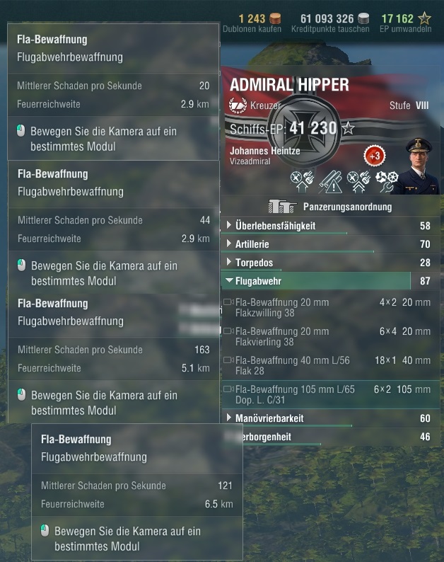 Ich bin der Meinung (wenn die Wiki stimmt), das die Prinz Eugen schlechteres AA als die Hipper hat.