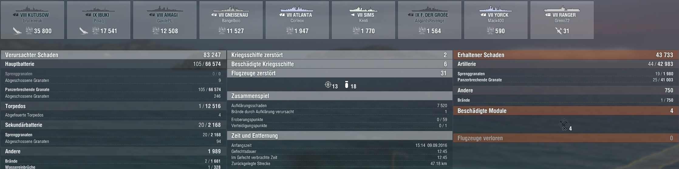 Sowohl Damage, als auch Flieger runterholen(jau ! Mit CV diesmal ! ) hat beim 2. Mal besser geklappt.