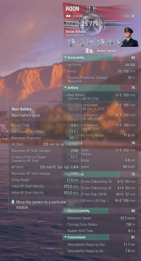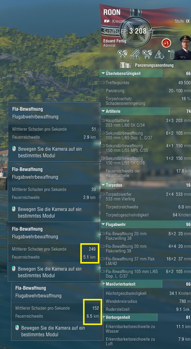 Zur Roon kann ich noch nicht so viel sagen, hab erst paar Spiele gemacht. Nach den ersten Spielen empfand ich aber das der Schaden konsistenter kommt und sie einfach deutlich mehr aushält. Sie hat fast den HP Pool von der Hindenburg und ich glaube auch die selbe Panzerung. Die AA ist auch nochmal ein ganzes Stück besser.
