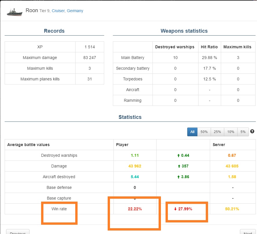 Klasse. Da braucht man gar nicht anfangen zu spielen, in so einem Match, wo der Gegner nicht nur kein AFK Schiff hat, sondern sehr gute Spieler und man selber hat n Haupt BB, der nicht spielen möchte/kann/will.