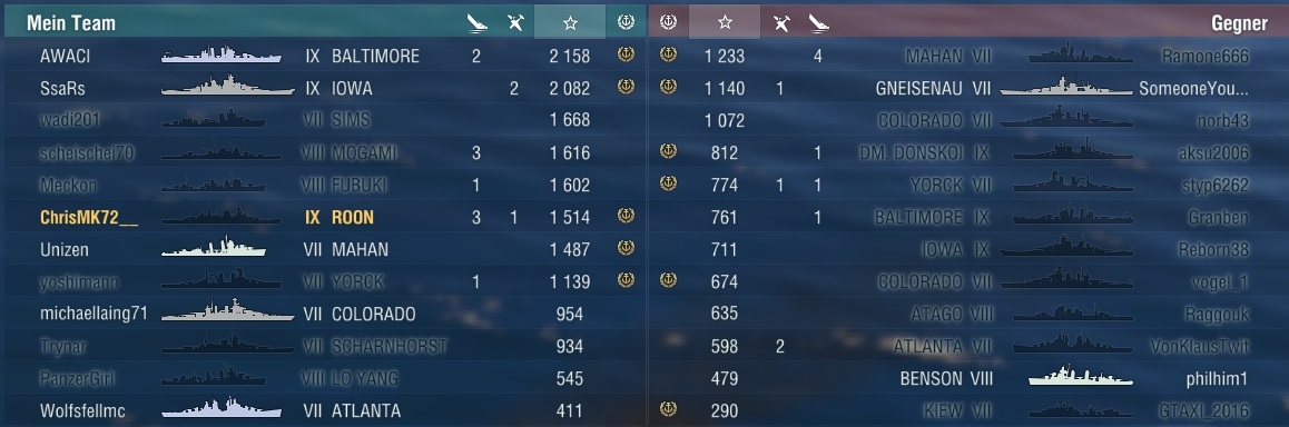 Beim Gegner spielten natürlich alle richtig gut mit, inkl. gutem CV und guter BBs.