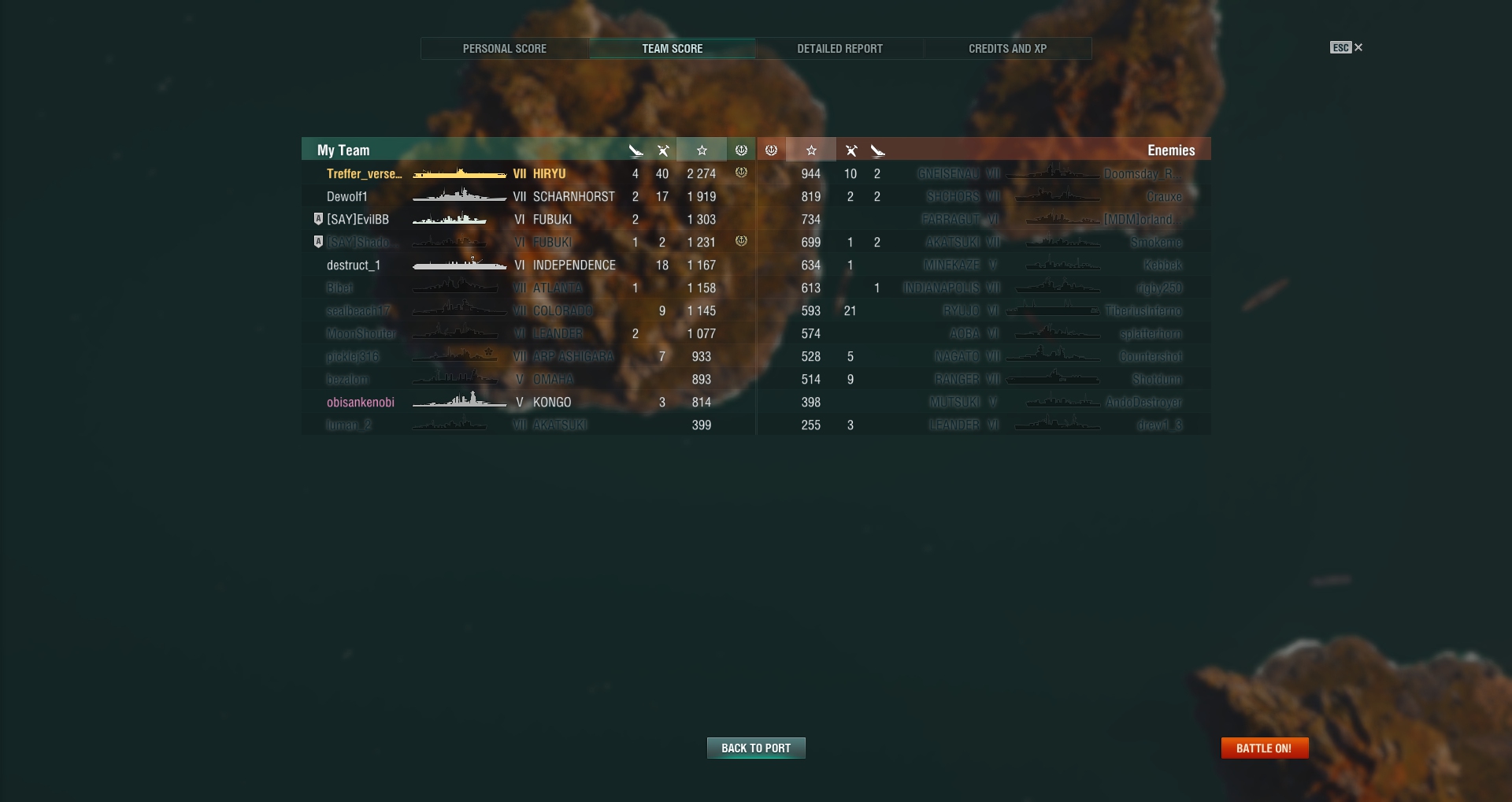 *Ich sage nicht, dass ein BB Spieler mit 1500PR einem anderen 1500PR BB Spieler gegenüber stehen soll. Selbst wenn die Leute in unterschiedlichen Tiers und Schiffsklaassen / Typen unterwegs sind, ist der Partie schon mal sehr geholfen, einfach weil es dann zumindest schon mal Leute in beiden Teams gibt, die wissen, wie man vorgehen sollten und eben *hoffentlich* nicht bei Domination - Two Brothers einen Lemmingtrain bilden, der innerhalb von 5 Minuten im Kreuzfeuer untergeht.*