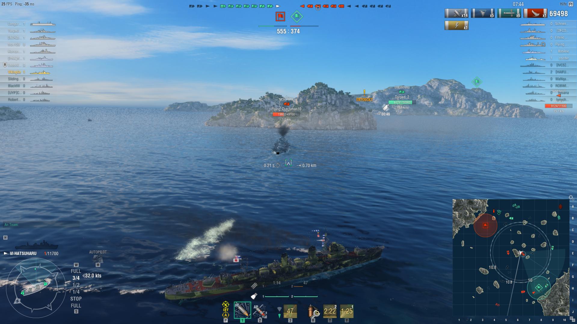 Andere Frage: Die Yugumo fahrt ihr schon? Bin da jetzt wegen der Torps sehr unentschlossen - die F3 Torps mit 76Ktn sind irgendwie nice, aber 8km Range ist schon knapp - andererseits gehe ich erst bei 5,5km auf, als 2,5km Puffer - andererseits fahre ich Yugumo ohne Nebel, um die Torps nach 30 Sekunden für ne 2. Welle zu haben und weil Nebel im Hightier auch oftmals nicht viel bringt - Radar und Hydro usw.