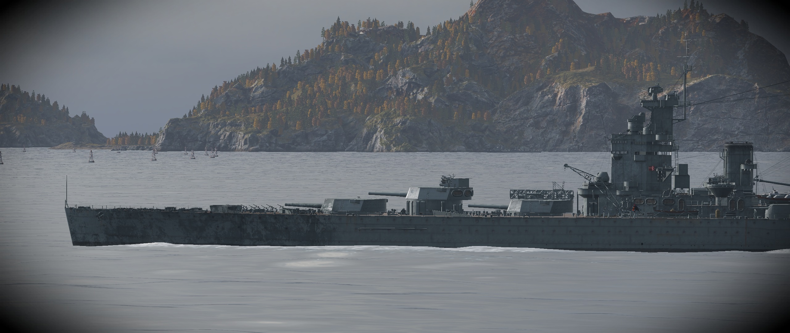 Wäre für T8 zu lahm, aber für T7 kann sie interessant werden ... typisches Bow-On-Schiff, aber besser einsetzbarer 3. Turm (im Vergleich zu Izumo). Wohl nicht sehr genau m. E.