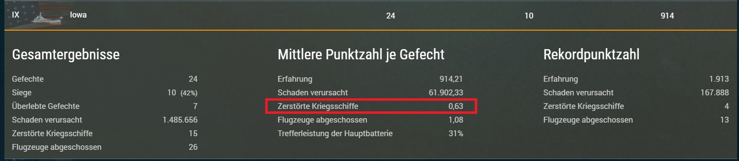grad mal geschaut. Mit der Iowa hab ich nur ca. jedes 2. Spiel einen einzigen kill.