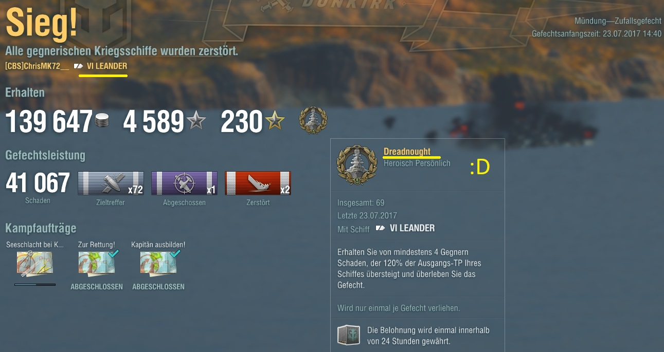 Wo würdet ihr "Jack Dunkirk" einsetzten? Ich bin mir nicht sicher ob der Smokeskill auf Kreuzern sinnvoll ist. Wenn nicht, dann würde ich den vermutlich auf die kommenden BBs setzen.