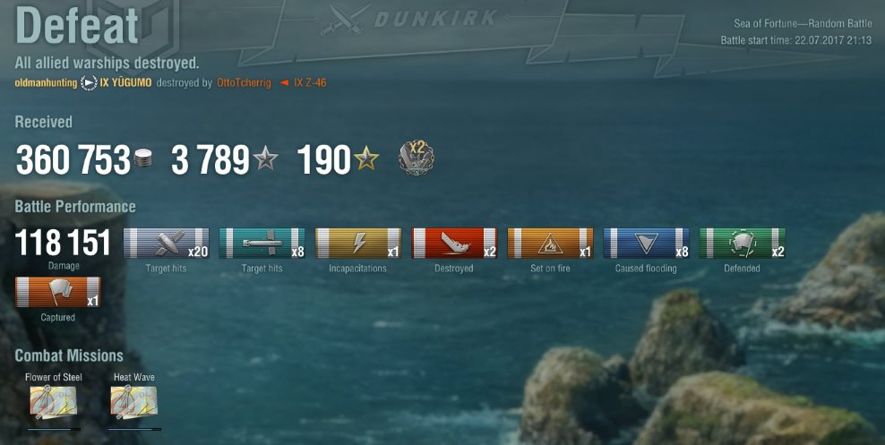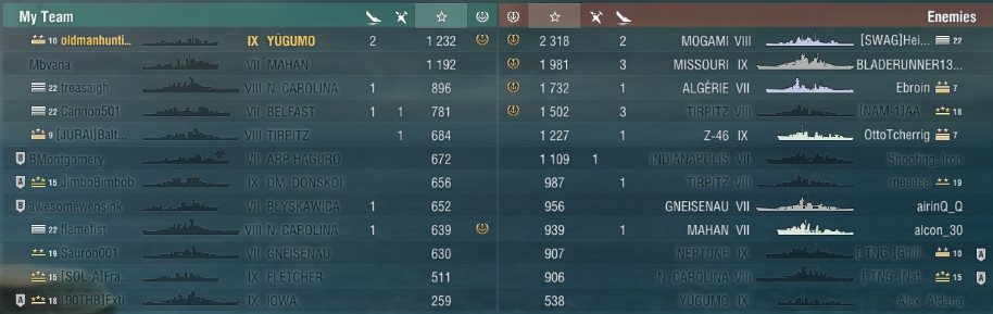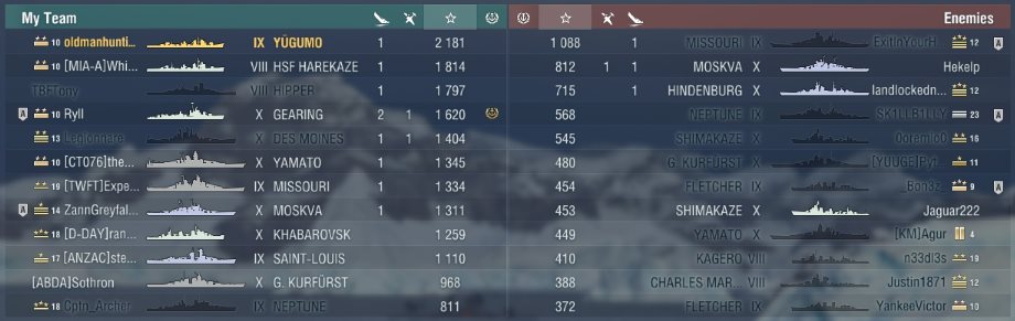 Samstag nach langer Zeit mal wieder die T9 Yugumo mit 12KM Torps gespielt. Ich brauche 15 Torpedo Treffer für einen Auftrag und was ist da besser als meine geliebte Yugumo.
