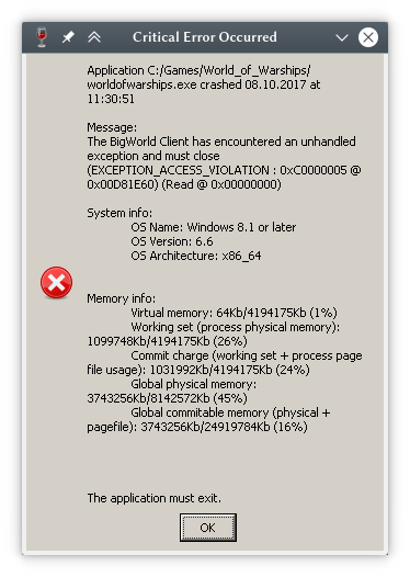 VikingGe schrieb:Spielt hier zufällig jemand unter Linux? Seit dem Update heute morgen kommt nach dem Login-Bildschirm nur noch das hier, ohne jegliche verwertbare Debug-Informationen von Wine (wine-staging 2.14).