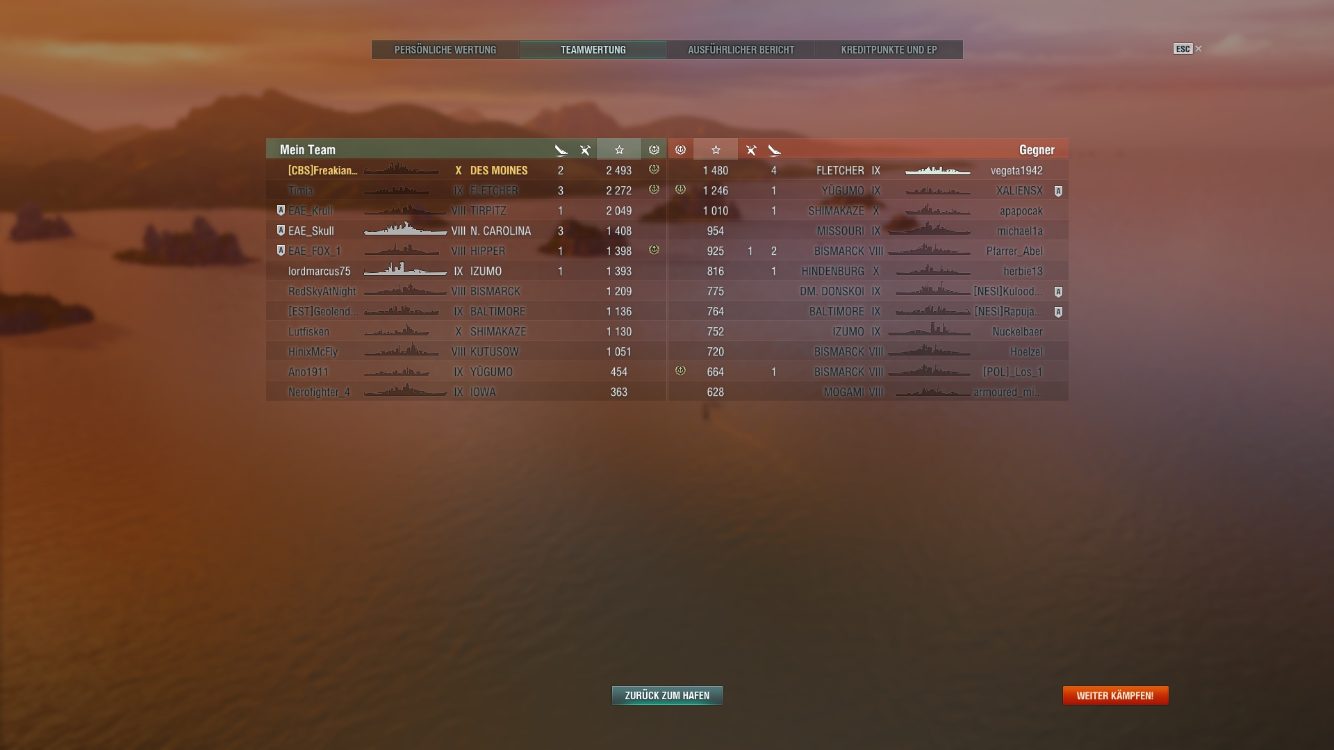 Ich handhabe das so, dass die Flak in der Regel aus ist. Es sei denn ich will die AA benutzten um Flieger runterzuholen. Es gibt auch Ausnahmen. Auf meiner Akizuki lass ich die AA in der Regel immer an, da ich einen AA Build auf ihr habe.