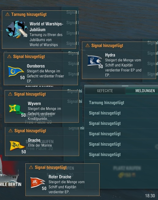 Mit Schiffen hatte ich auch noch kein Glück. Letztes Jahr zu Weihnachten habe ich die Emden gezogen... und verkauftRelaxo32 schrieb:Bisher hatte ich einmal 30 Premiumtage, 1x 50k EP, 1x 5 Mio Credits, 4x Sonderequipment, 3x Flaggen.