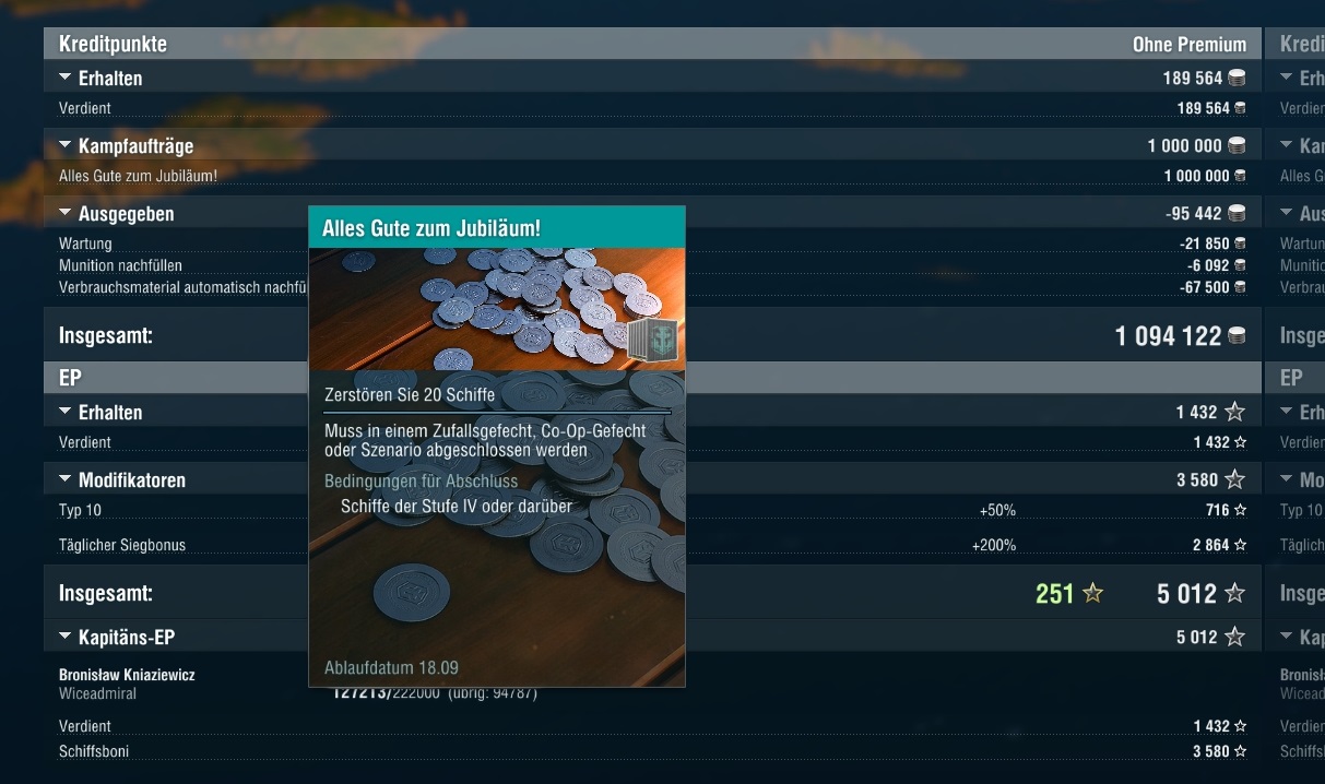 Dafür habe ich mich sehr schwer getand, die 2 Kills mit T5/6 in Coop zu schaffen. Immer hat mir irgendjemand meine Kills weggeschnappt. Und mit den 50k Schaden mit einem ARP-Schiff wollte es auch erst nach mehreren Anläufen klappen.