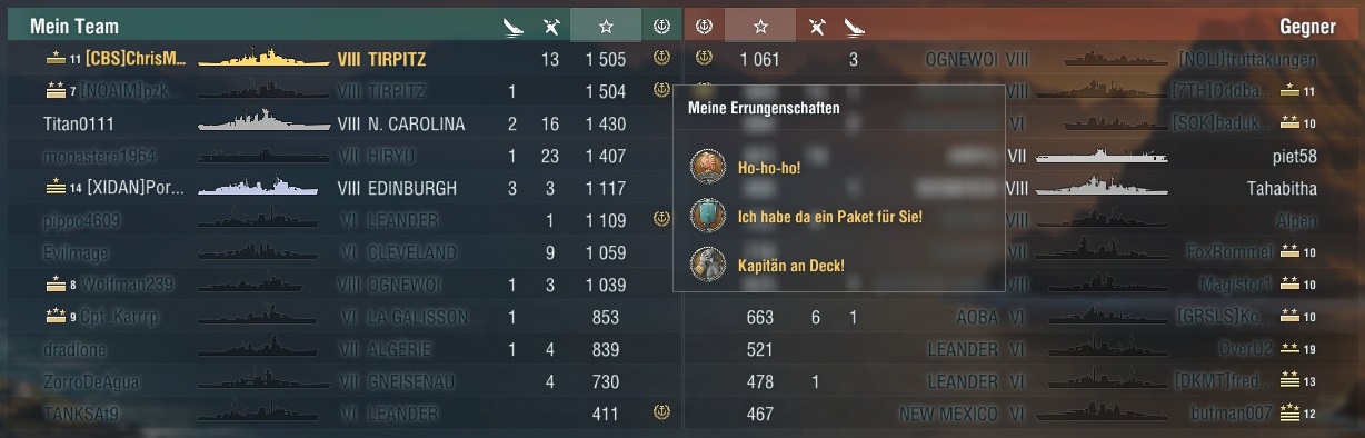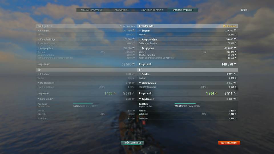 Ich bin ganz glücklich mit den Gefechten, die ich mit meinen beiden T10 gemacht habe. Besonders die Stats der Montana wurden ordentlich gepusht.