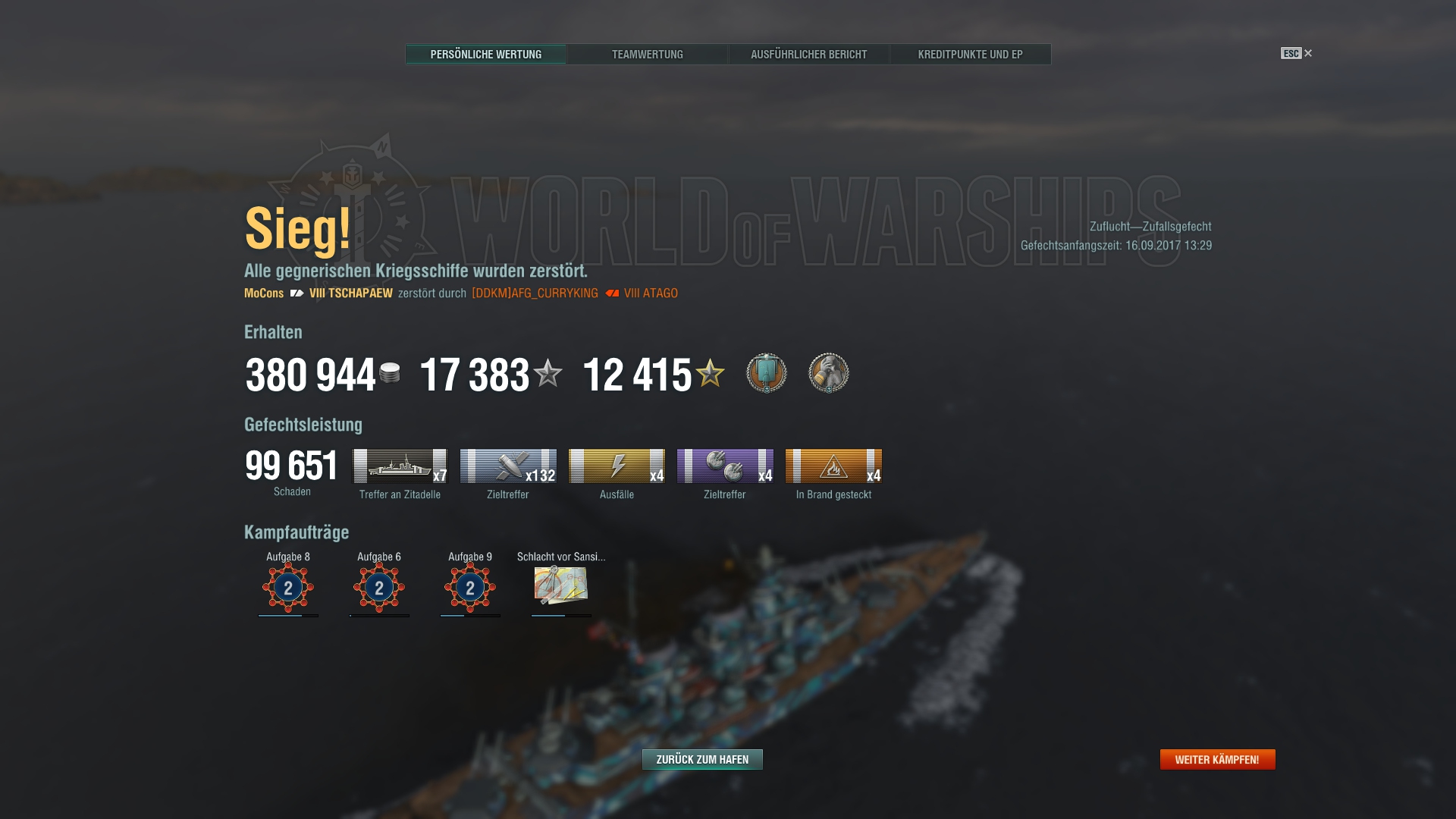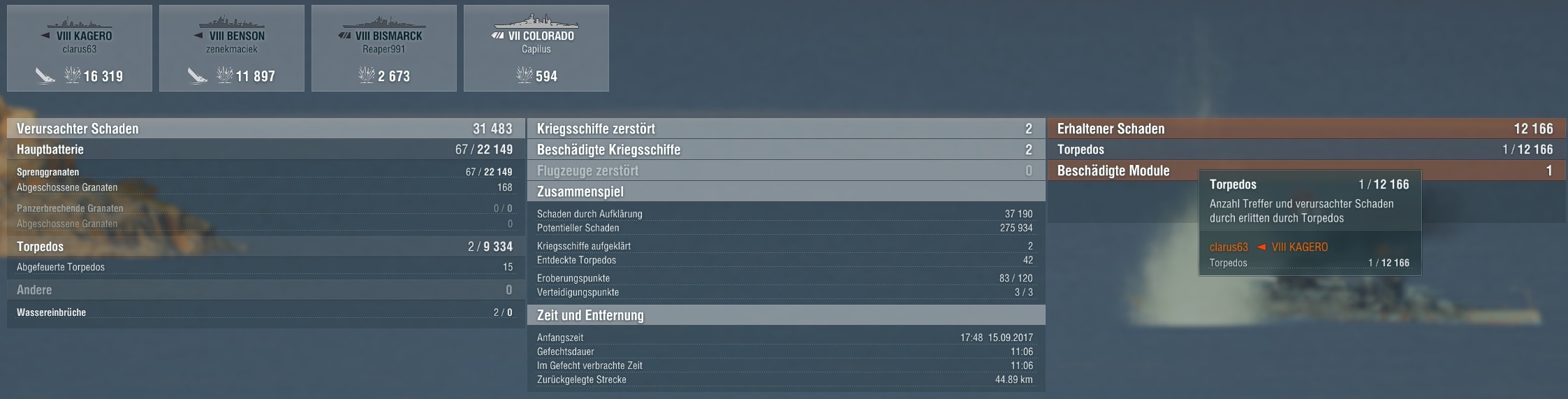 Am Bismarck-Dreadnought bin ich haarscharf vorbei geschrammt. Wurde in den letzte Sekunden des Gefechts doch noch durch einen Fernschuss erledigt.