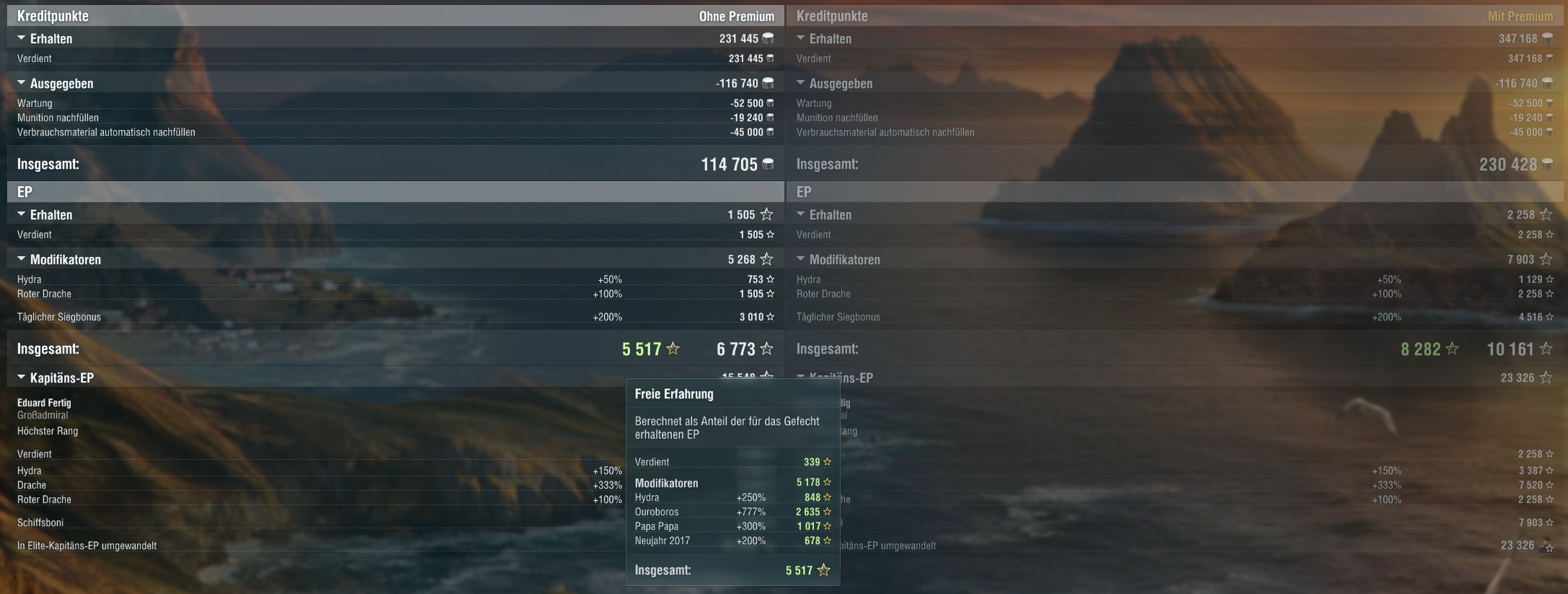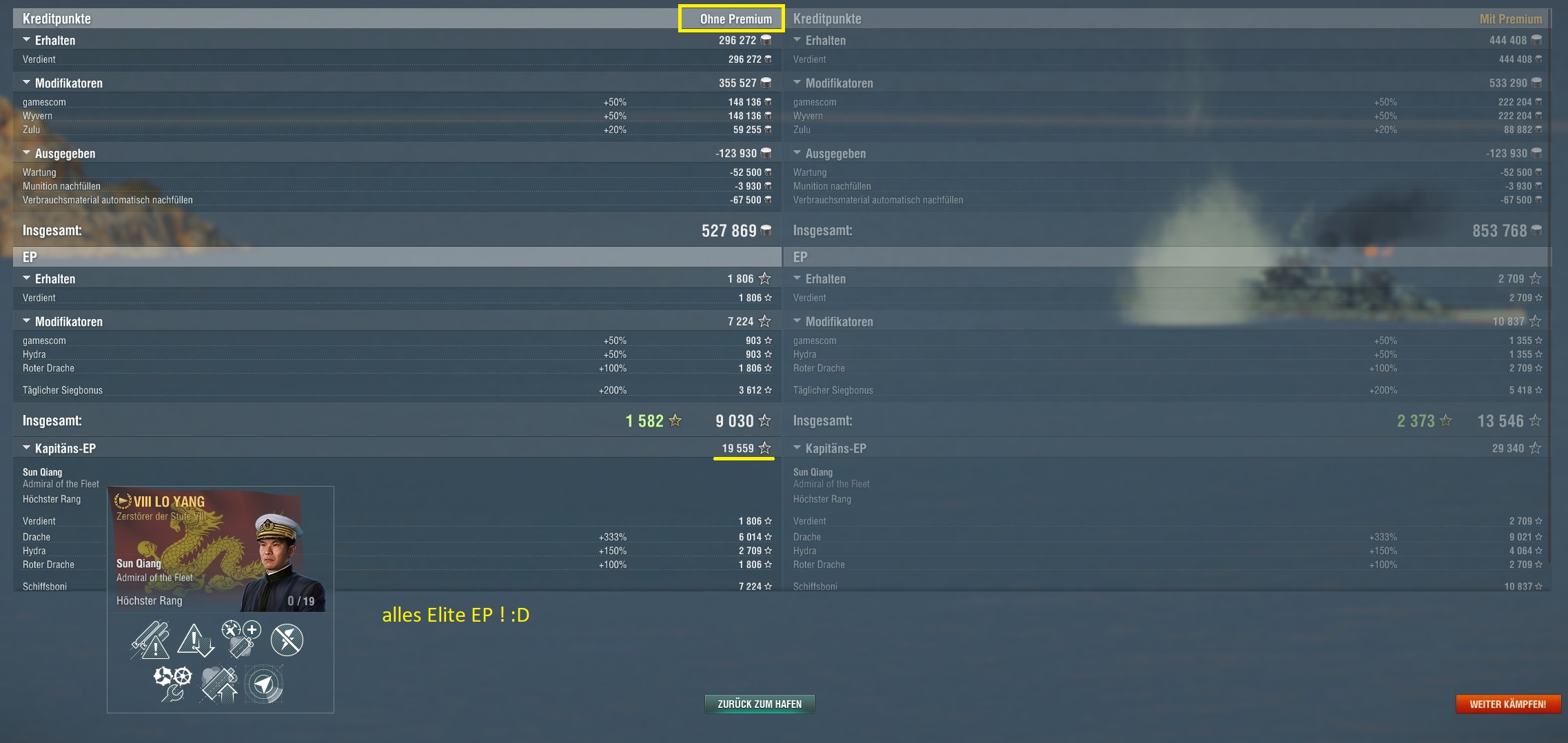 Aber verdammt, mit Flaggen und 200% + Premium kommen schon einiges an EP zusammen.
