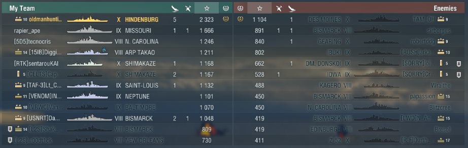 Habe festgestellt, dass meine Hindenburg ein Magnet für schlechte Teams ist. Habe auf der nach 34 Gefechten eine 38% Win Rate.