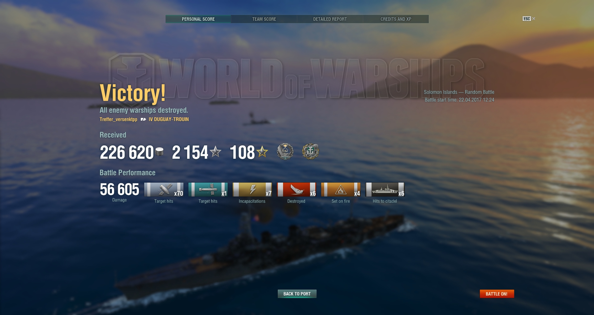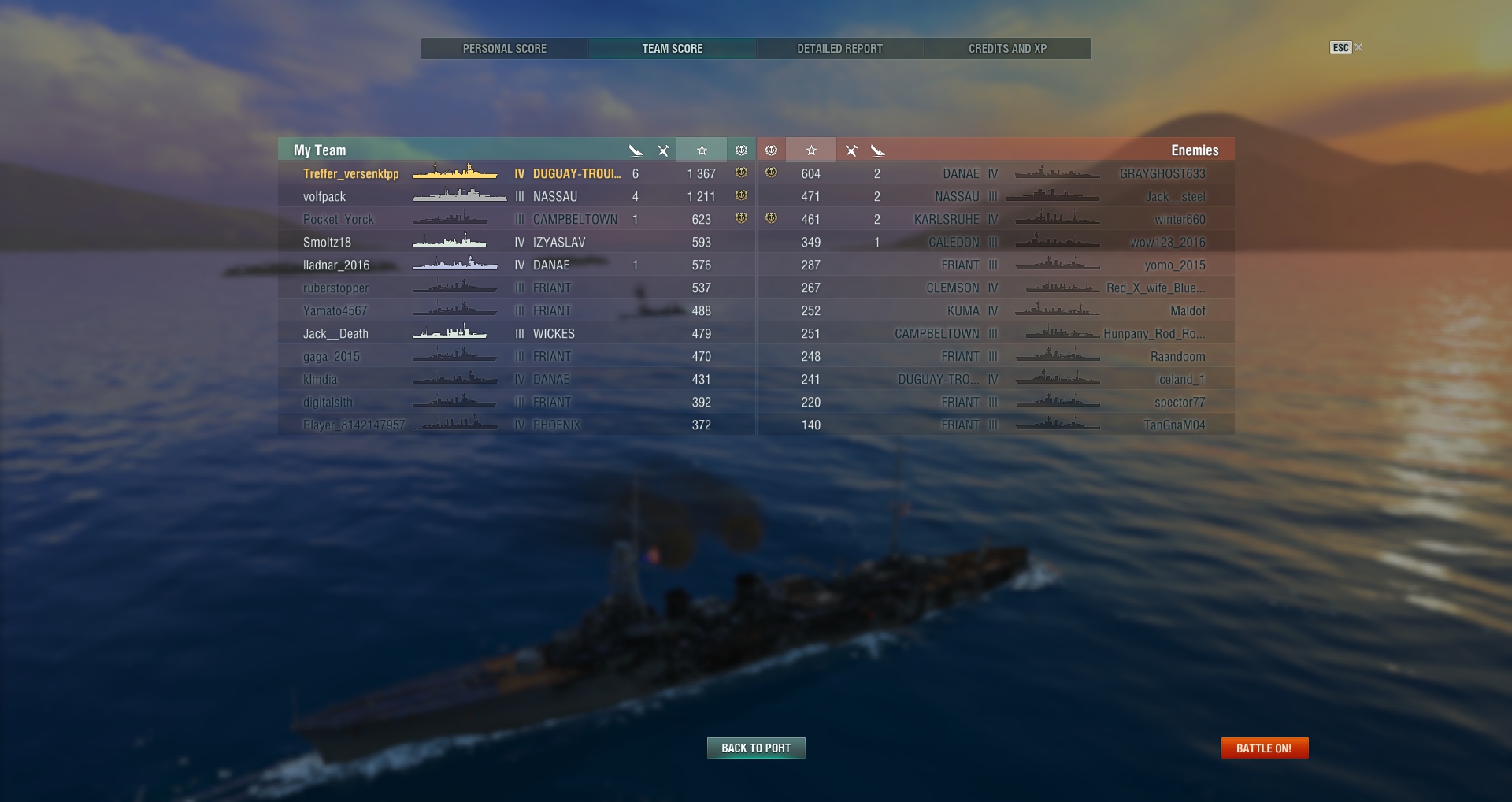 Ich dachte, ich könnte mit meinen Low- und Mid Tier-BBs heute schön unter den ganzen französischen Kreuzern wüten. Hat sich aber raus gestellt, dass BBs nicht wirklich ein guter Konter gegen diese Schiffe sind. Auf Distanz brennen die Franzosen einen unaufhörlich ab und auf mittlere und kurze haben sie ihre extrem starken Torpedos.