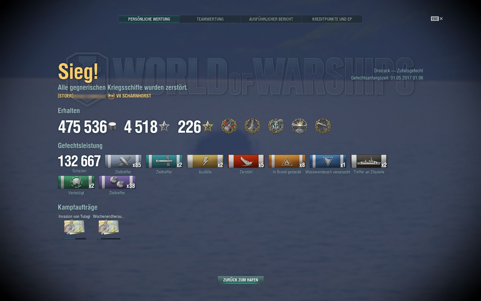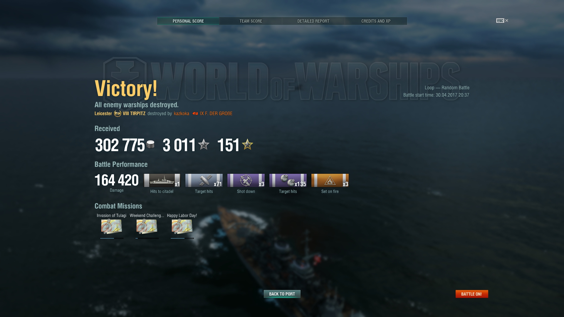 Gestern habe ich meine Schadensbestleistung in der Tirpitz erhöhen können. Das Sekundär-Feuer ist schon wirklich beeindruckend und hat eine wunderbar psychologische Wirkung.