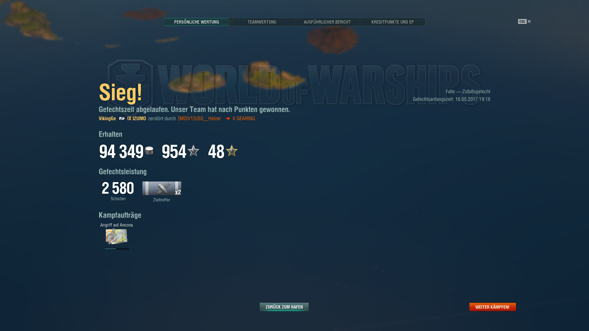 Bei den Japanern kommt dummerweise mit der Myogi gleich nochmal eine ziemliche Gurke. Wobei die durchaus ihre Stärken hat. Sie ist für ein Low Tier-BBs extrem schnell und hat genaue, weitreichende Geschütze. Leider hat sie nur 6 Kanonen (die Konkurrenz hat fast doppelt so viel Feuerkraft) und eine völlig ungenügende Panzerung.
