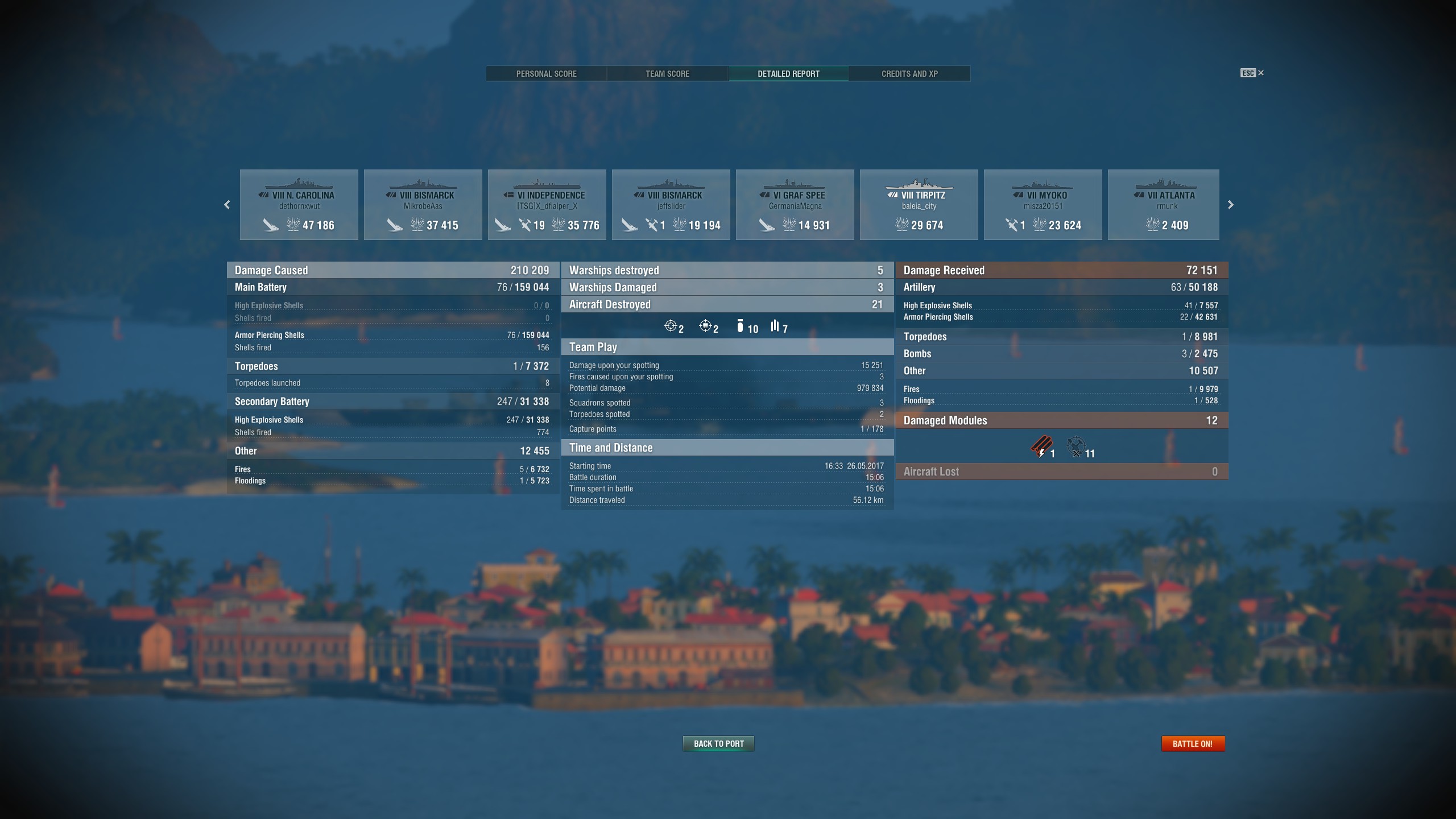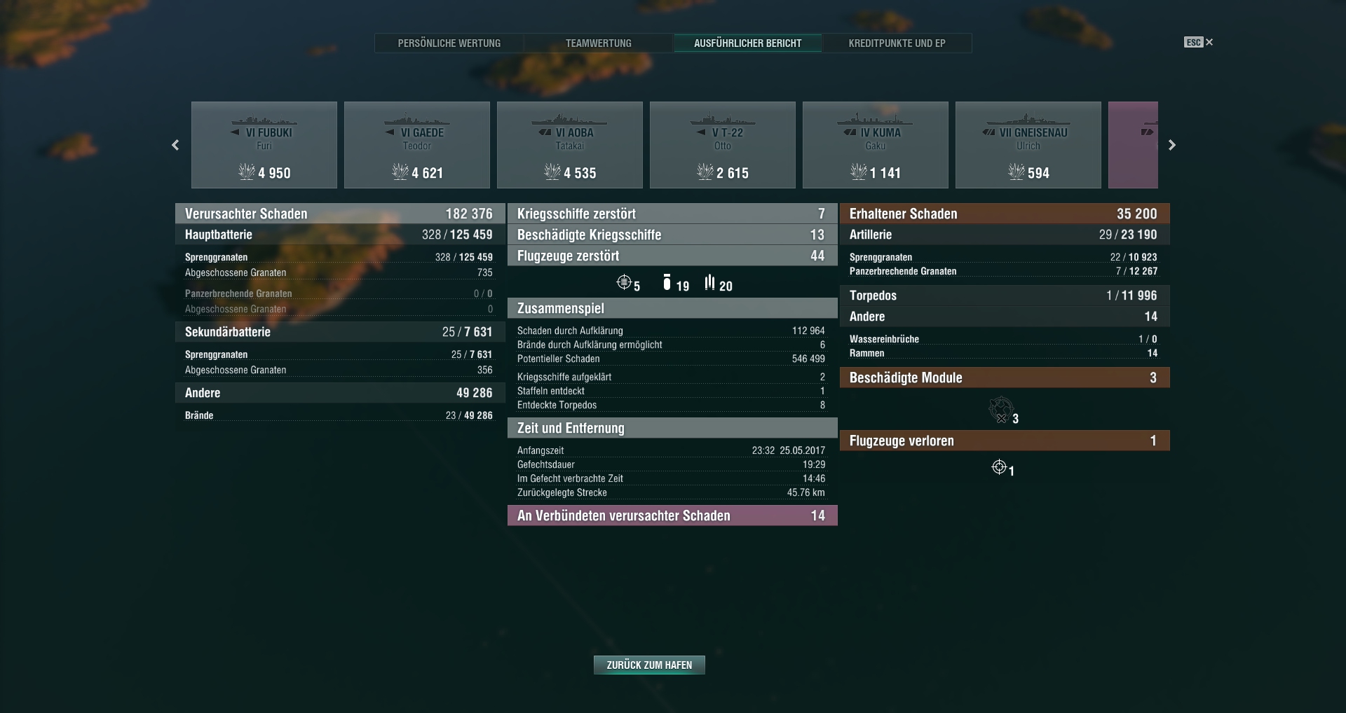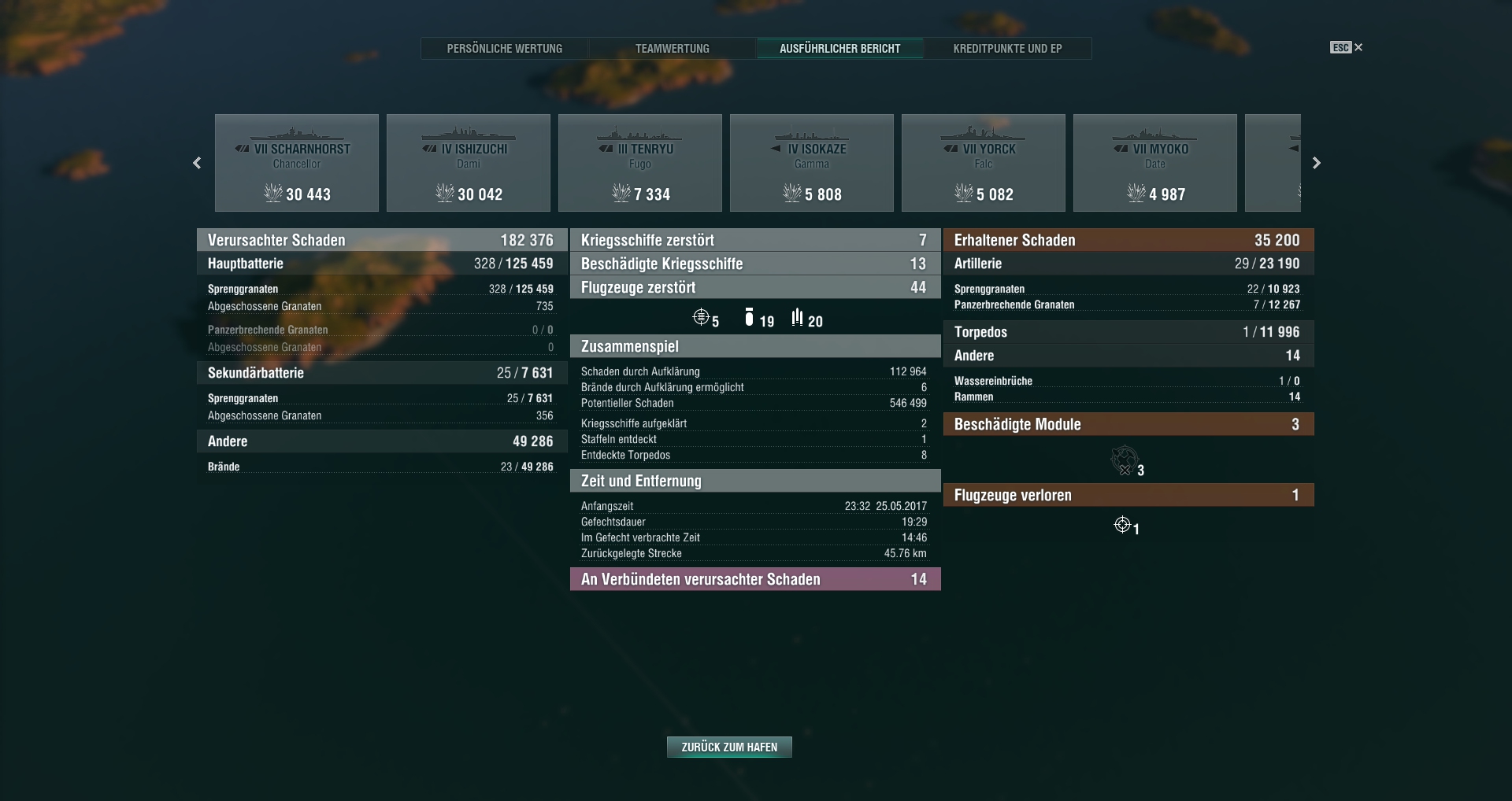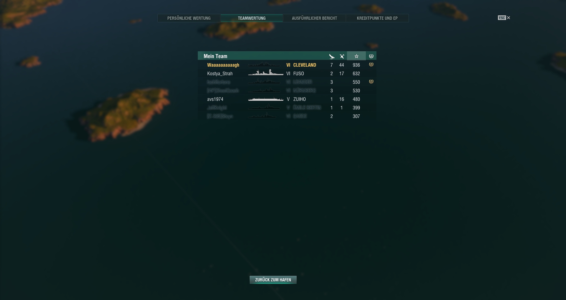 Die Baltimore und Des Moines spielen sich dann wieder wie die Cleveland, recht passable Panzerung, aber lange Granatenflugzeit und hohe Bahn, kurze Reichweite ohne zusätzliche Module. Verlangen dann wieder ein anderes Gameplay, oftmals am besten an den Inseln in Deckung kuscheln.