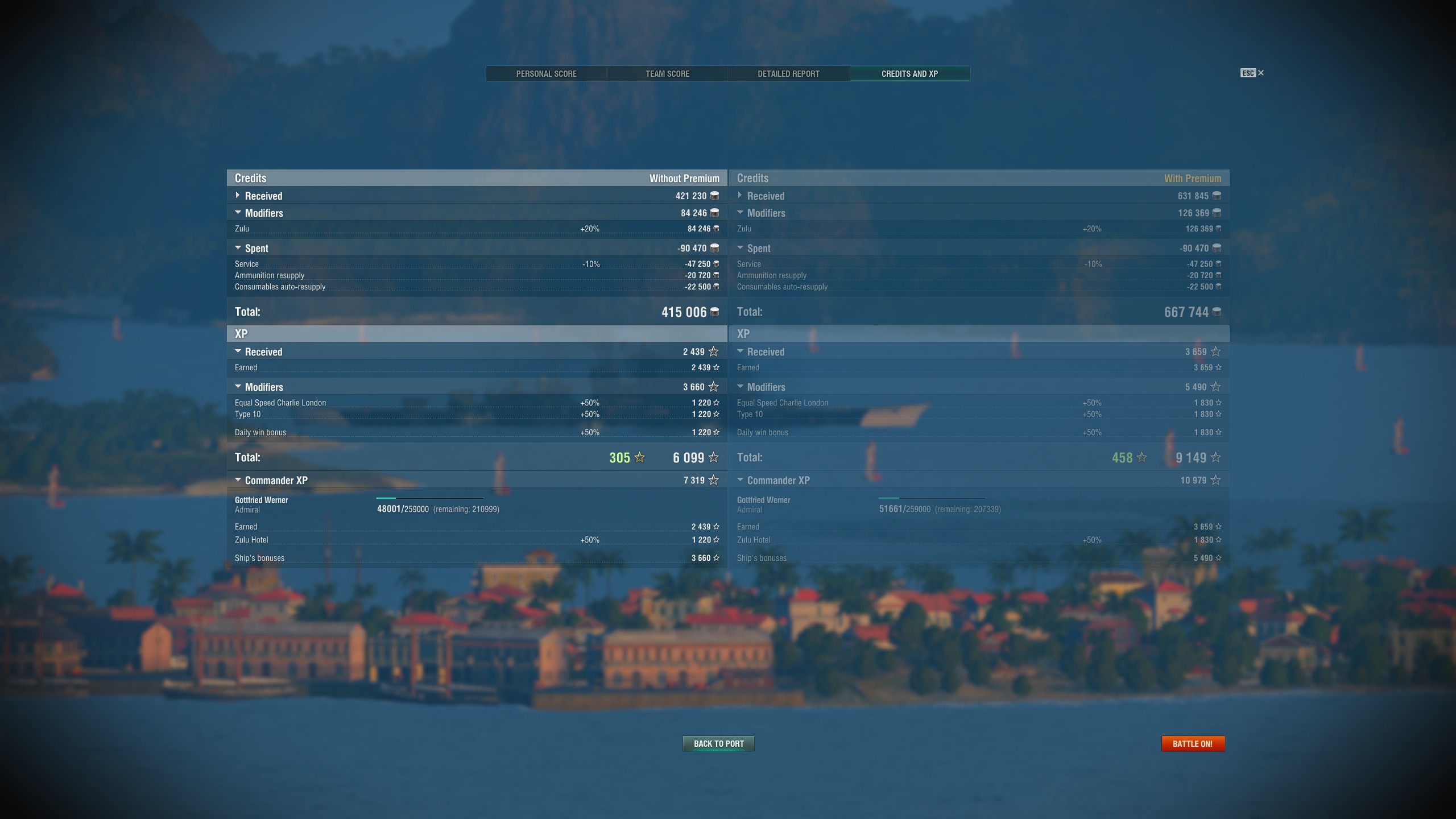 Die Pensacola auf T7 wiederum hält sehr wenig aus, die New Orleans nur mit dem Bug voran. Bewaffnung dagegen ist auf beiden sehr gut, vor allem die AP.