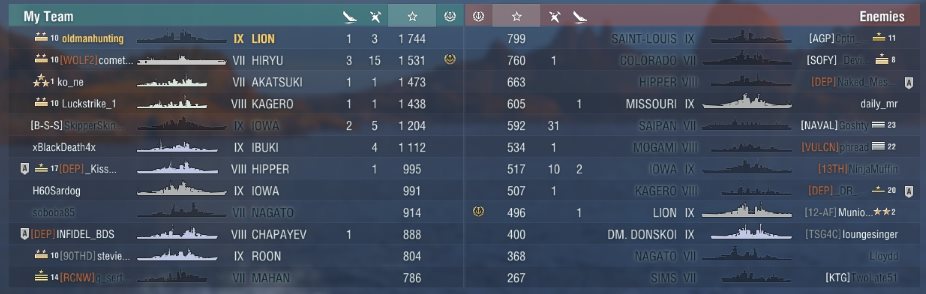 Heute auch einiges gespielt und unter anderem Tirpitz, Bismarck und Amagi. Diese 3 Spiele waren natürlich T10 Gefechte. Die Amagi ist schon richtig Klasse, weil sehr genau und wo die trifft, wächst auch kein Gras mehr.