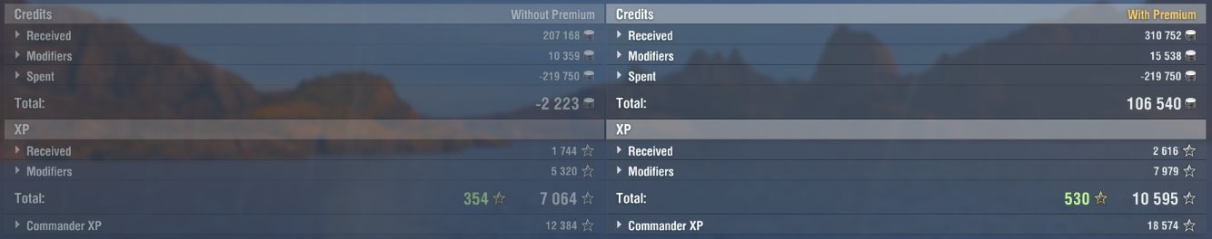 Werde ich auch so machen. Die Lion bekommt den Rumpf mit FreeXP und den Rest muß die sich selbst erarbeiten. Da ich die Lion voll ausbauen werde, sind das 336K XP, bis die T10 Conqueror im Hafen steht. Also ca. Mitte 2018.
