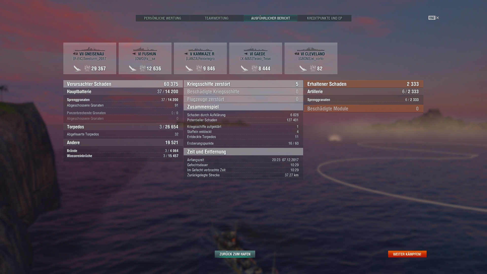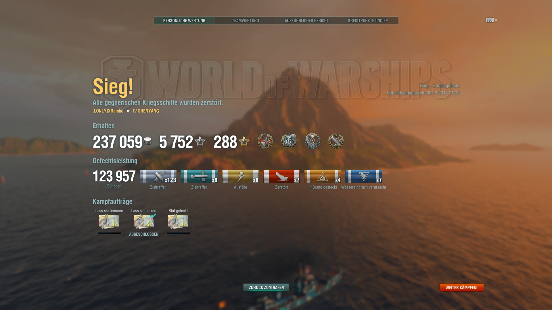 Tolle Runde mit der Shenyang! 7 Schiffe versenkt. Wahnsinn!