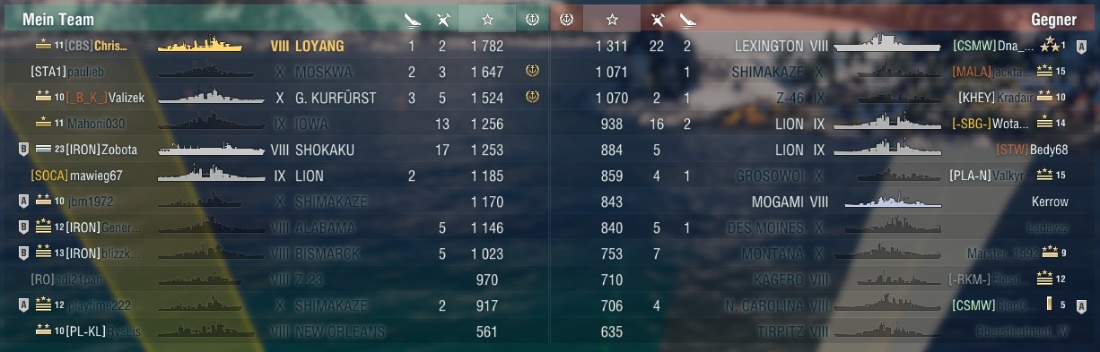 Die konnten mir B aber nicht wegnehmen. Trotz Torp-Teppichen, Fliegerangriffen und auch BBs die Pushen wollten, zusammen mit CA dahinter.