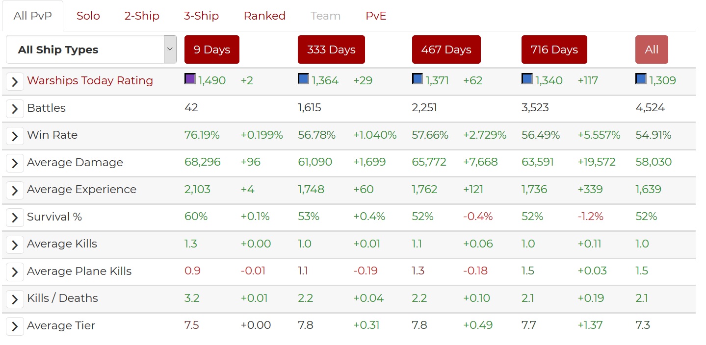 10 Gefechte mit den 5er DD, 60% Winrate und 55k Schaden im Schnitt