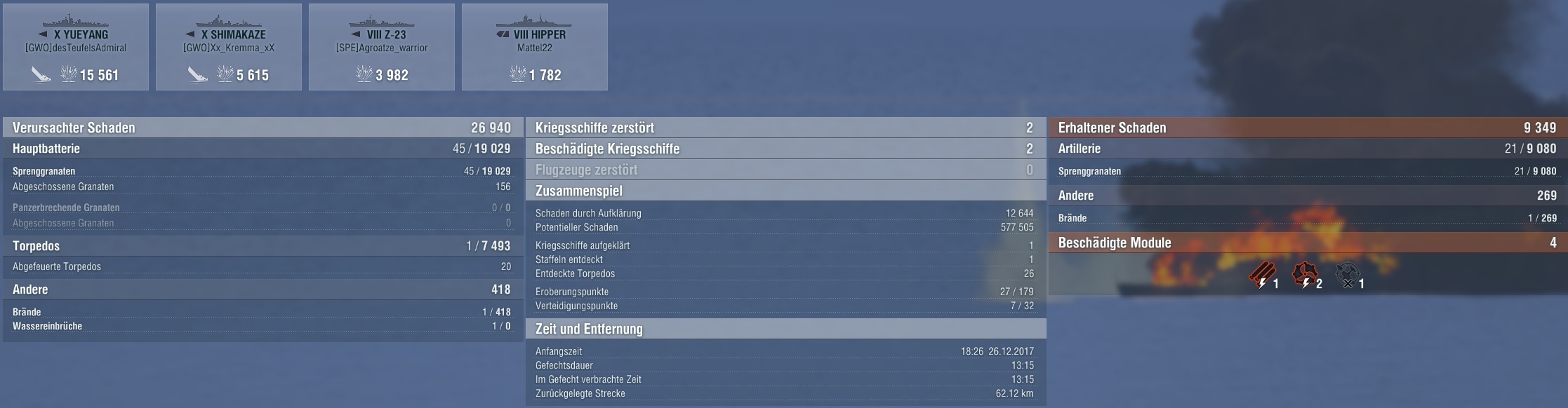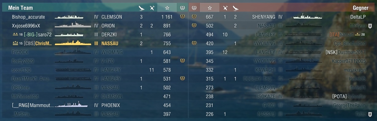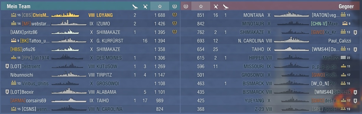 Ok, hab zwar nicht auf das Match geachtet(oder unbewußt doch ? ) Trotzdem bin ich erster geworden und die 3er Division Gegner T10 DDs nicht !