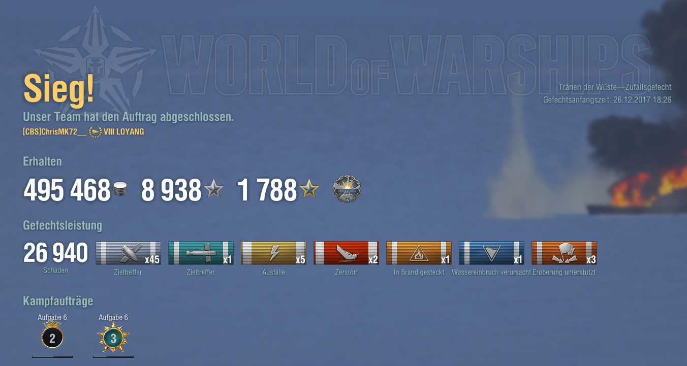 Auf meiner Mission, XP zu scheffeln, war ich in der Lo Yang unterwegs, als mir eine 3er Division T10 DDs das Leben schwer machen wollte. Hehe !
